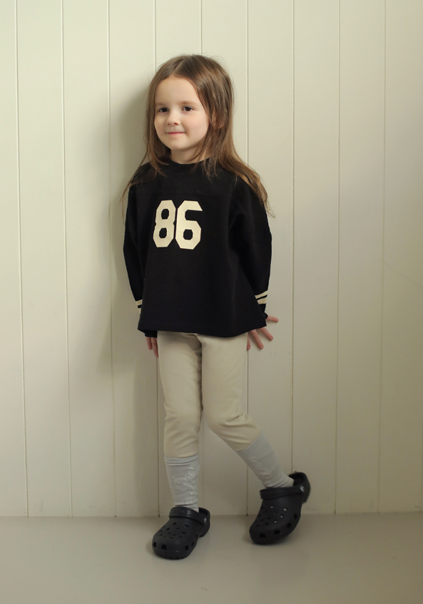 깔끔한 소매 스트라이프와 중앙 숫자 나염이