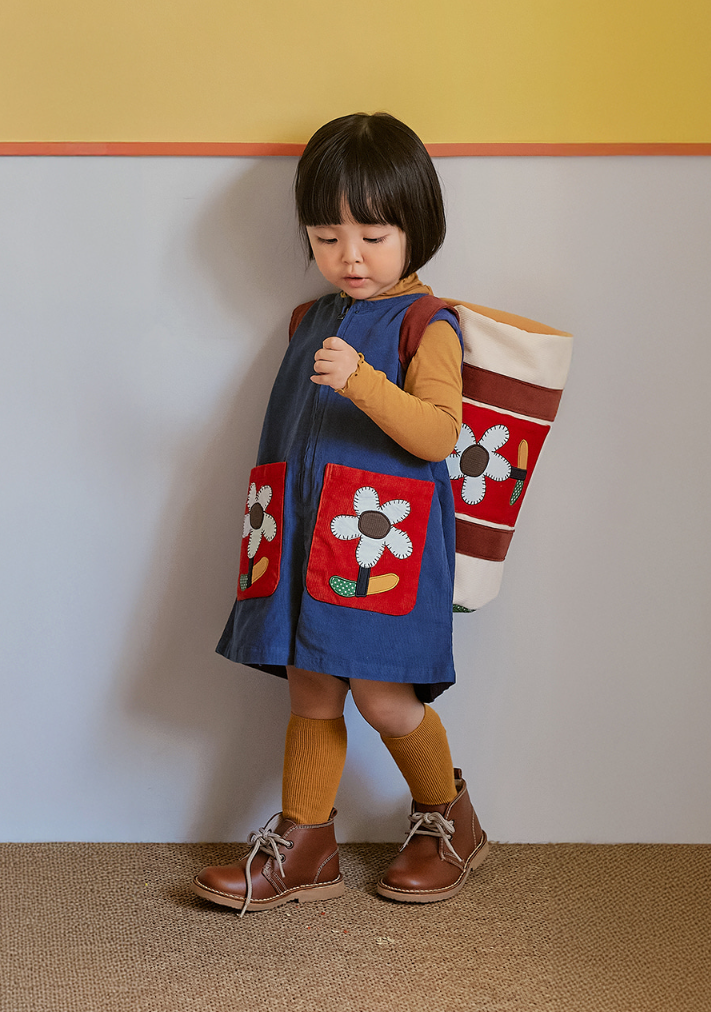 포켓에는 자동차와 꽃 아플리케 자수를 놓아