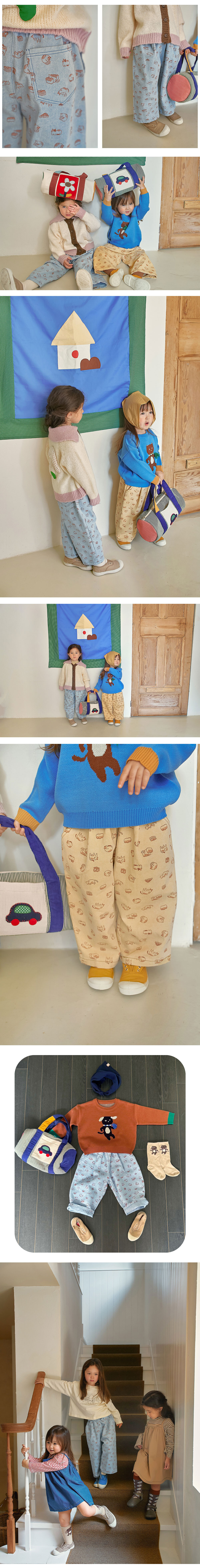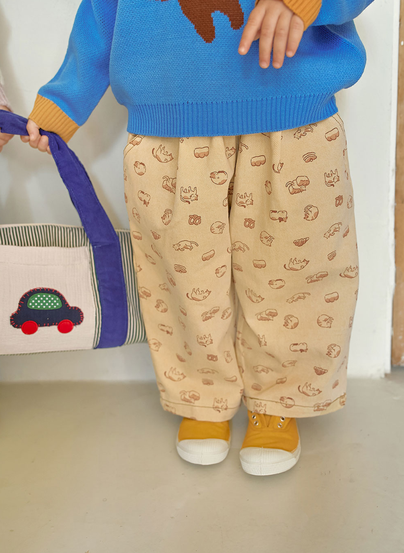 귀여운 고양이로 가득 찬 키튼크루 와이드 팬츠는