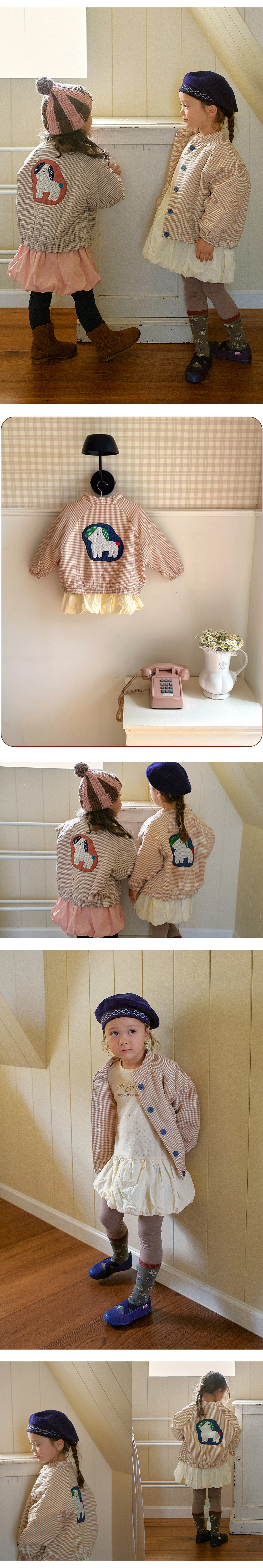 엠버의 무드를 가득 담은 멍멍 본딩 자켓은