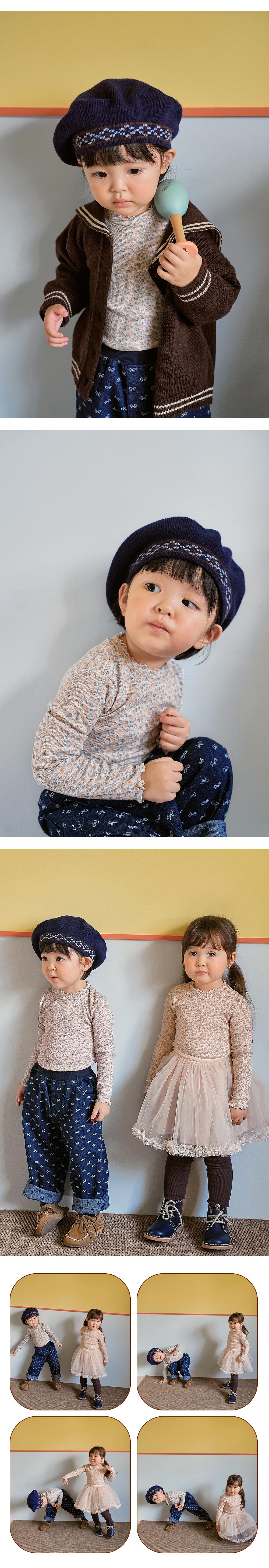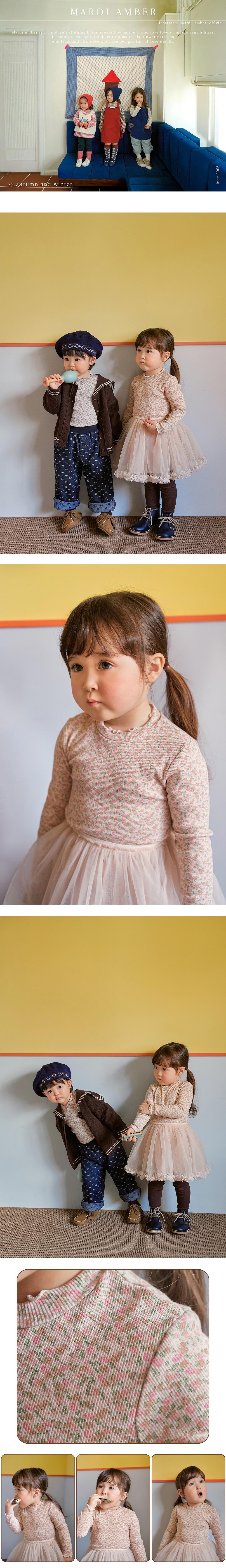 잔잔한 꽃나염이 사랑스러운 소피 폴라 티셔츠는