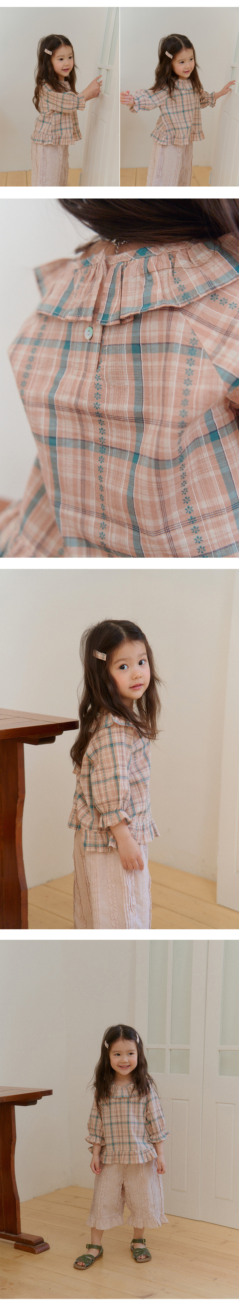 체크 원단 사이사이에 작은 꽃 패턴을 더해