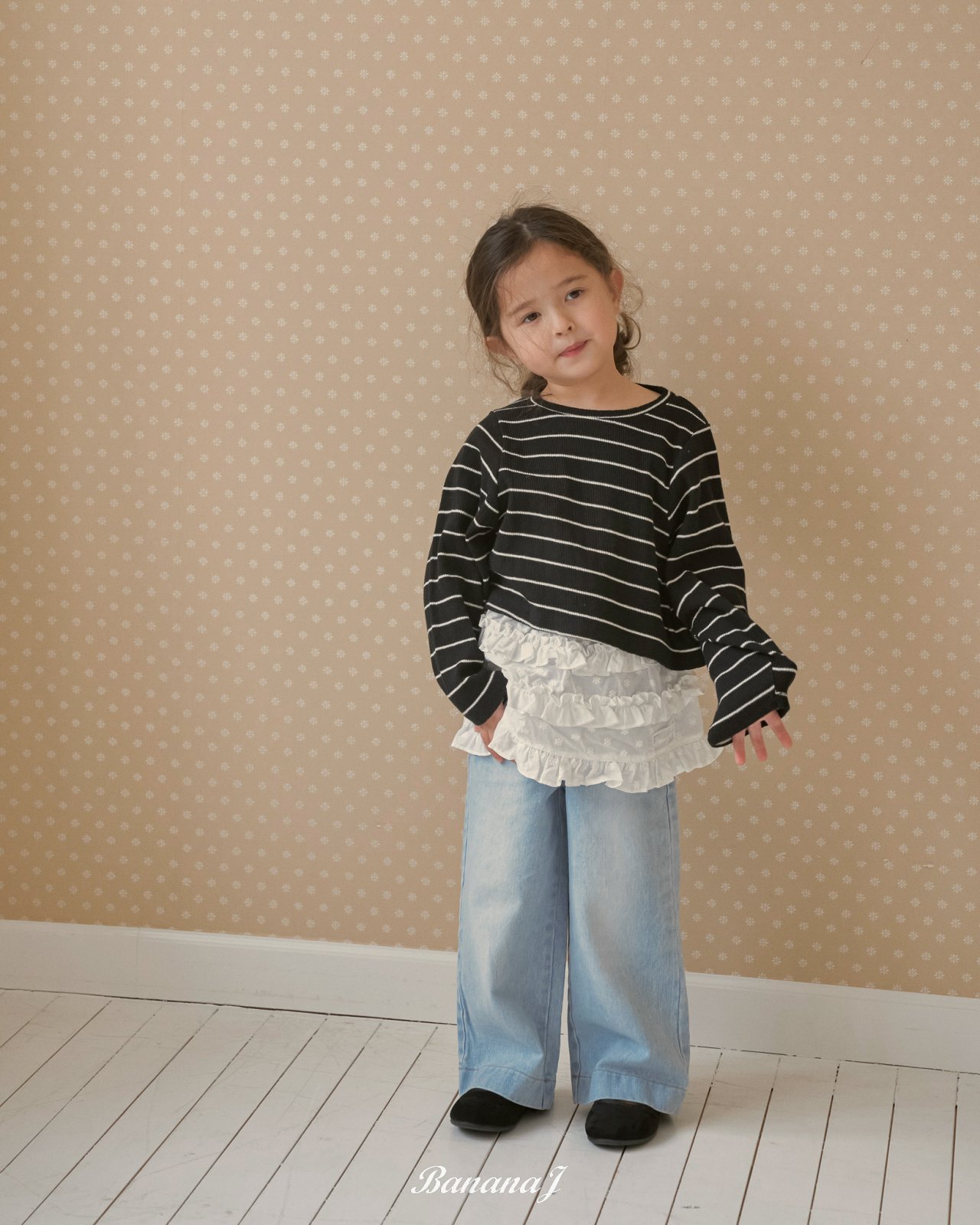 잔잔한 조직감이 느껴지는 아일렛 스트라이프 티!