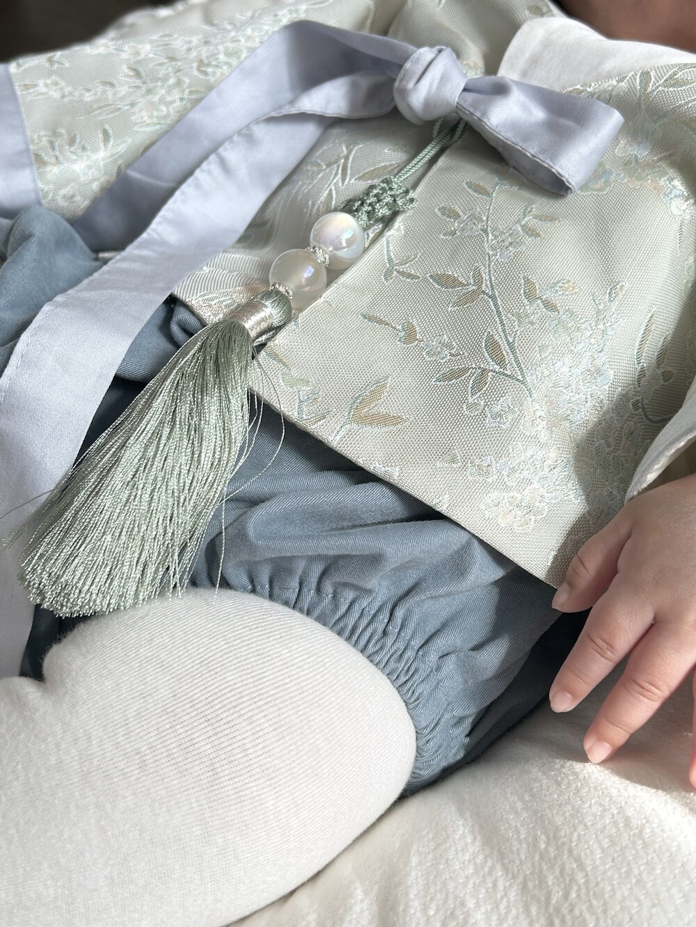 고름을 다 묶은 후에 달아주셔도 됩니다!