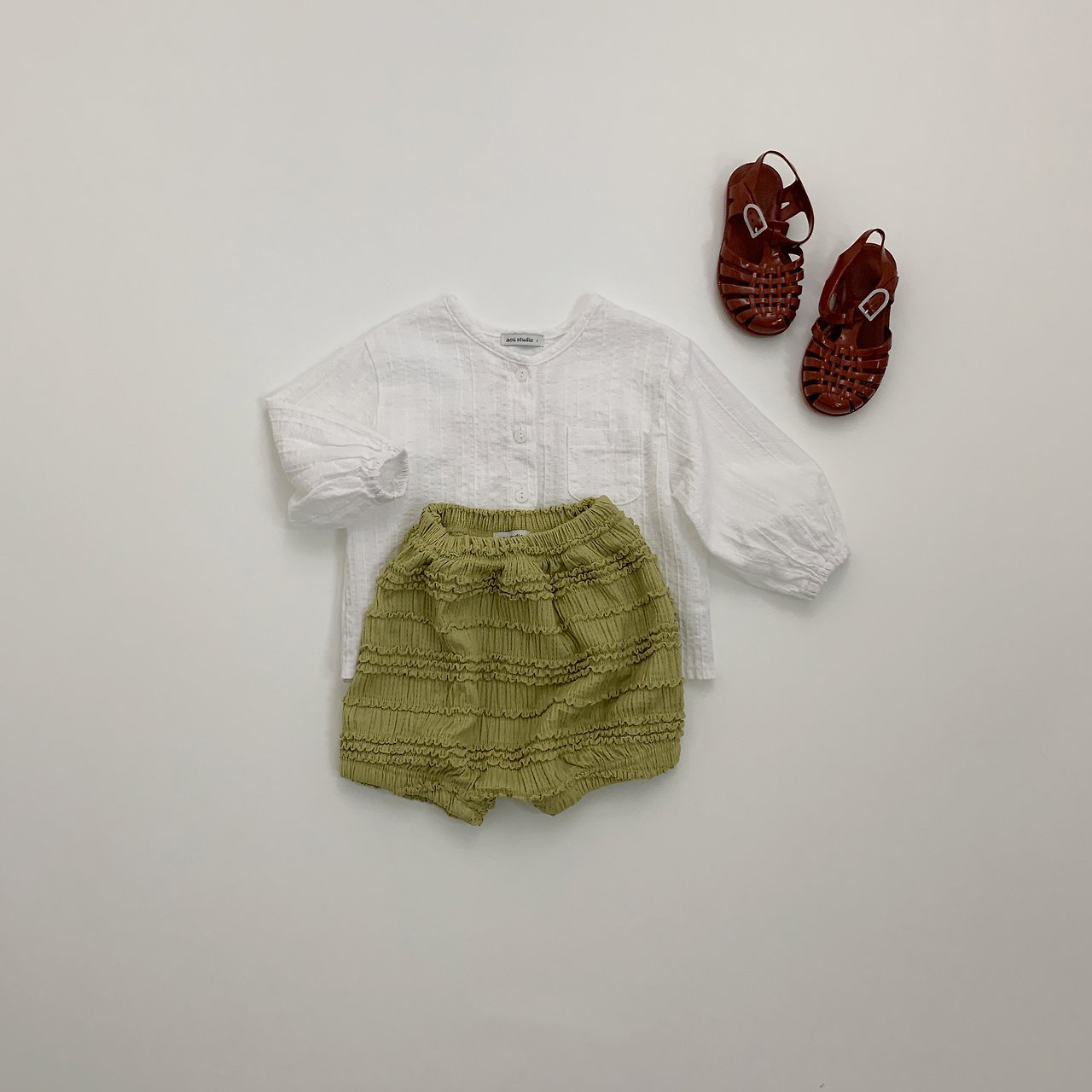 라운드 넥과 버튼 디테일로 깔끔하면서도