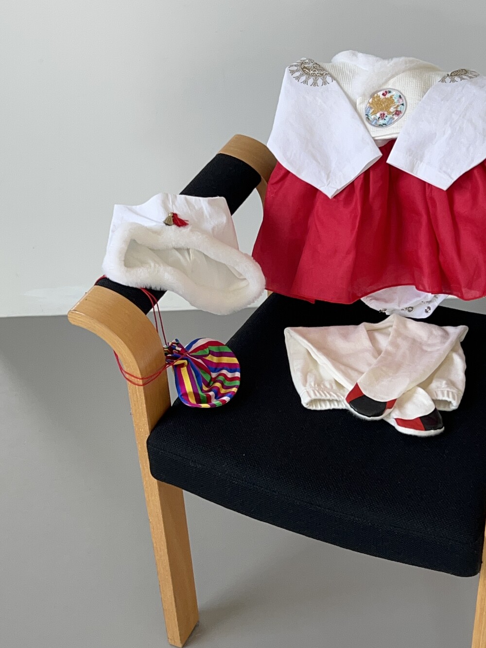 함께 코디된 조바위, 보넷, 돌띠는