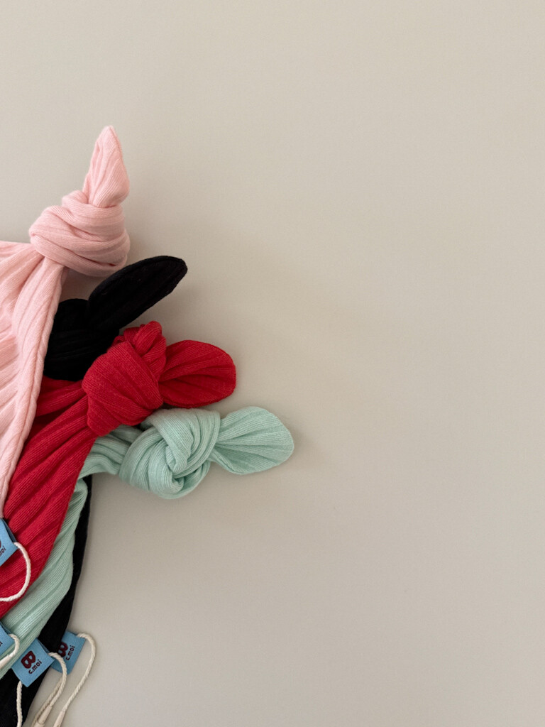 골지 짜임과 귀여운 꽁지 매듭 포인트로
