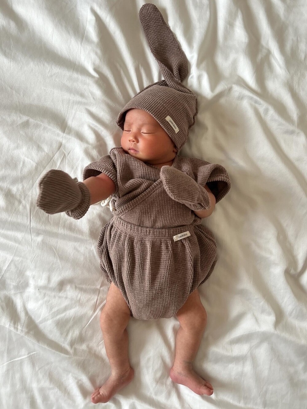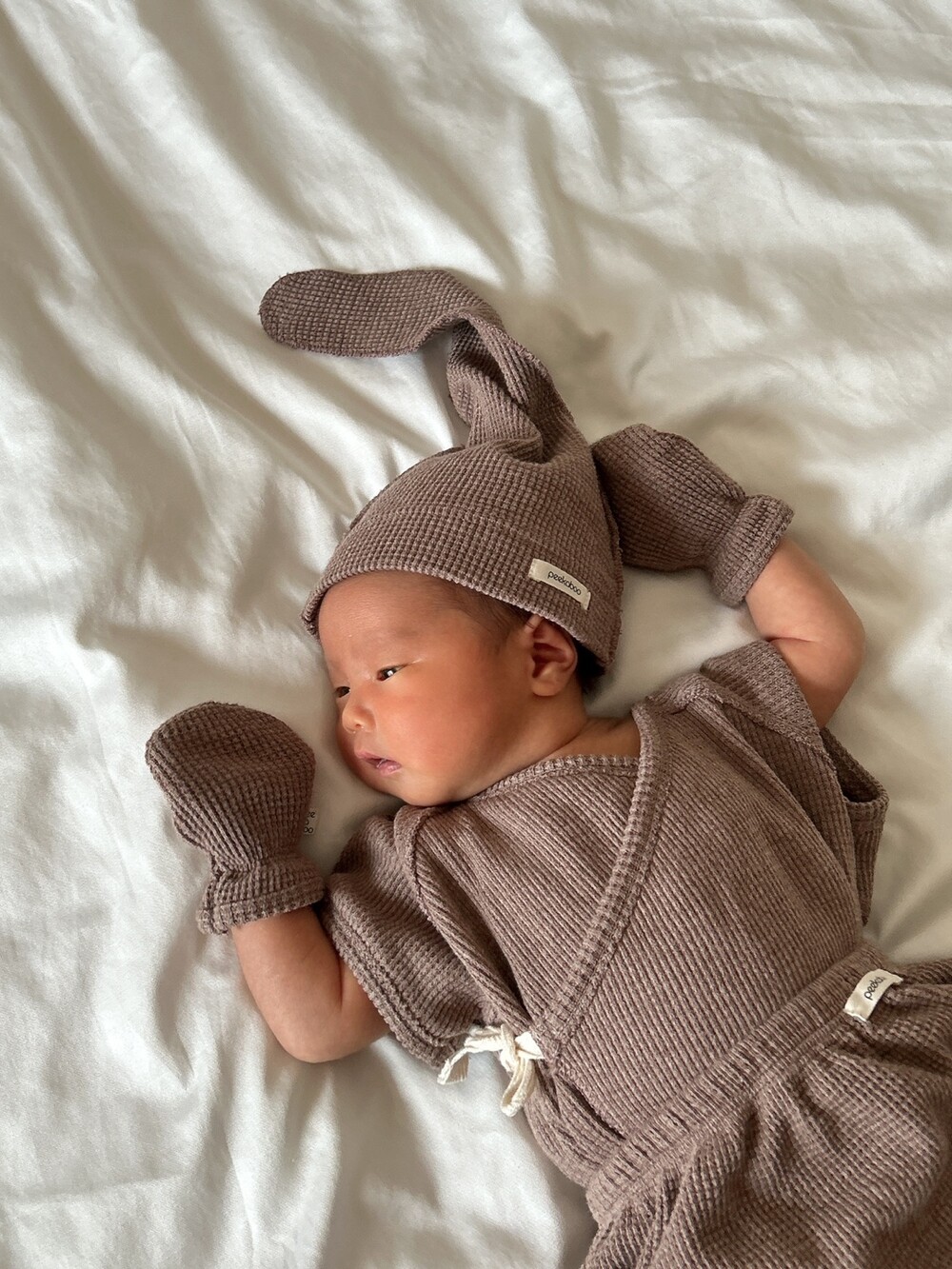 플레인한 느낌의 와플지 배냇세트에요!